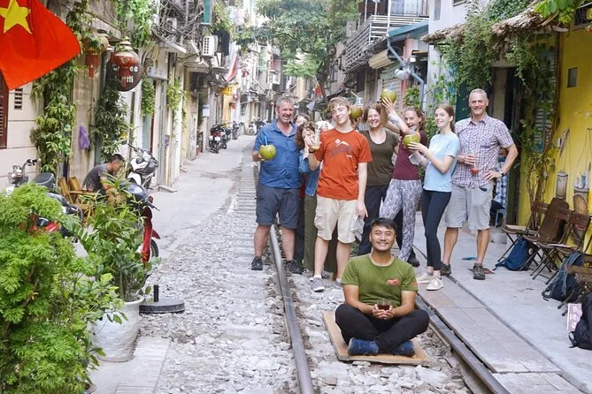 Sim, a Train Street faz parte do roteiro — você vai tomar café lá enquanto o trem passa.