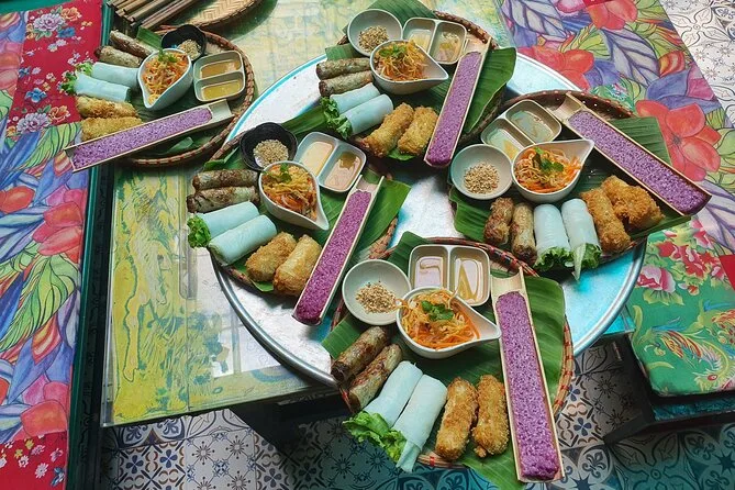 Você vai provar rolinhos primavera fritos, rolinhos frescos (Phở Cuốn), banh mi, macarrão colorido, salada de mamão, café de ovo, vinho de arroz (“moonshine”) e a cerveja fresca Bia Hoi.