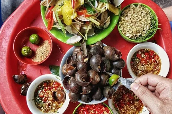 O tour inclui a degustação de pelo menos 7 pratos e bebidas vietnamitas diferentes.