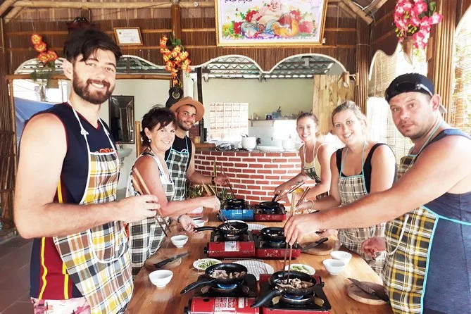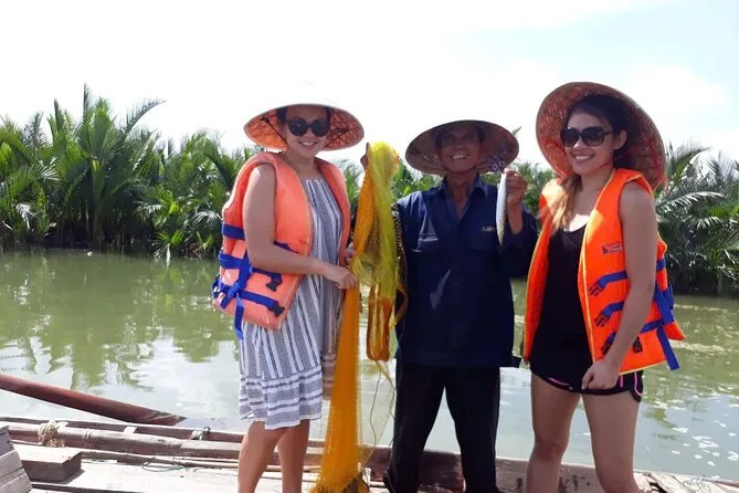 Seu dia inclui transporte de ida e volta no hotel em Hoi An, todas as entradas para explorar a floresta de coqueiros de barco cesto (com coletes salva-vidas), pesca prática com moradores locais, aula interativa de culinária vietnamita com chefs simpáticos (com opções vegetarianas), além de uma refeição completa com o que você preparou e chá ou água antes do retorno ao hotel.