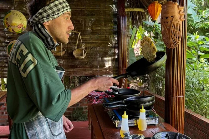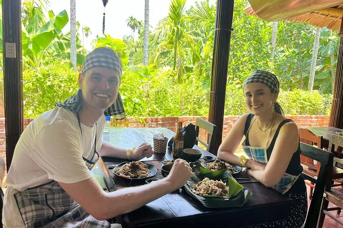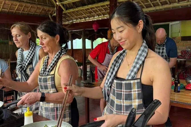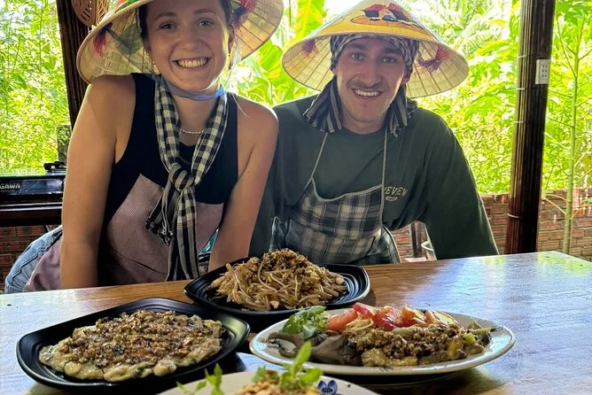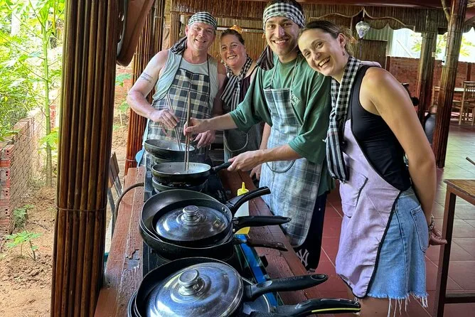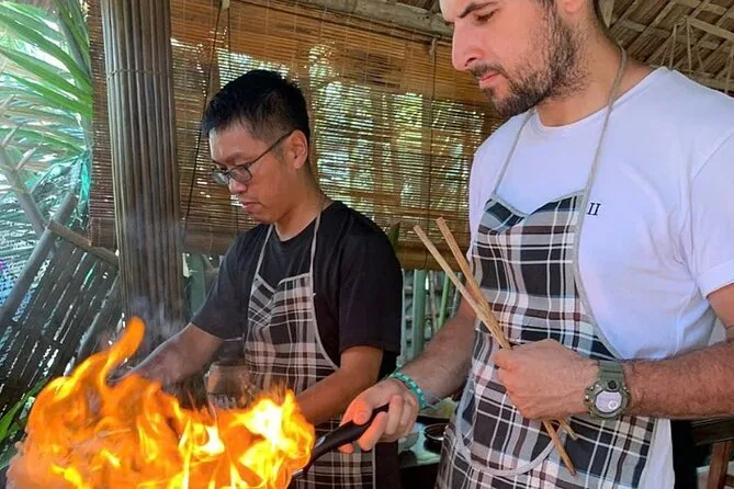 Você vai passear pelos mercados matinais de Hoi An com um chef local, remar em um barco cesto de bambu entre coqueiros enquanto tenta pescar caranguejos, e depois preparar pratos vietnamitas tradicionais à beira do rio. Prepare-se para risadas, sabores inesperados e momentos que ficam na memória.