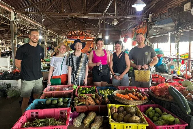 Seu dia inclui traslado do hotel ou ponto de encontro até o colorido mercado de Hoi An com o guia Tam; todos os ingredientes para cozinhar; passeio pelos canais da vila de coqueiros em barco cesto de bambu (com várias chances de pescar caranguejos); aula prática com um chef local; além do almoço feito por você antes de voltar relaxado — e provavelmente cheio — para o ponto de partida.