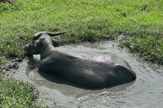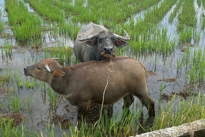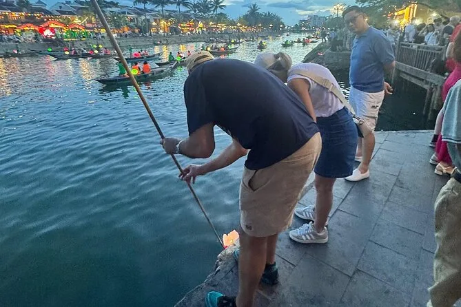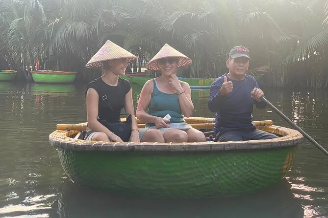 Seu dia inclui busca no hotel ou ponto de encontro com o guia, uso das bicicletas para explorar as vilas rurais de Hoi An e a Vila de Vegetais Tra Que, experiência de montar em búfalo d’água se quiser, remar num barco cesto com locais na Floresta de Palmeiras Nipa (com chá e doces de coco), passeio pelas ruas do mercado da Cidade Antiga ao anoitecer e tempo para soltar sua própria lanterna de papel no rio Hoai antes de voltar.