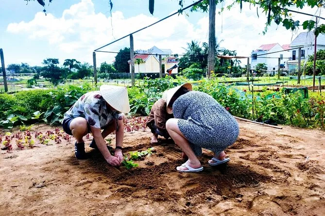 Você vai pedalar pelo interior de Hoi An com um guia local, ajudar agricultores na vila Tra Que, deslizar num barco cesto sob coqueiros e compartilhar um almoço vietnamita fresquinho à beira do rio. Prepare-se para risadas, sapatos sujos e momentos que ficam na memória muito depois da viagem.