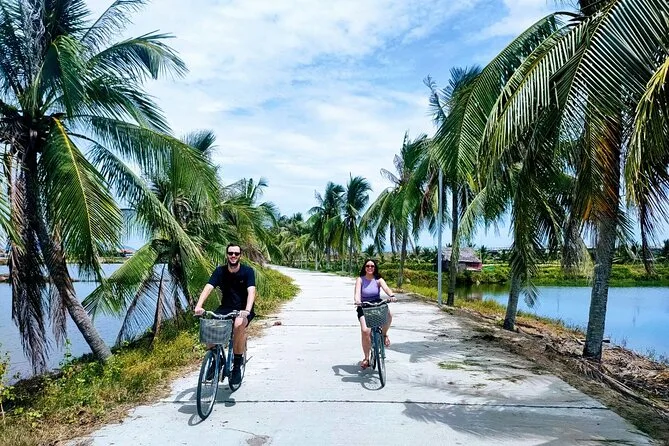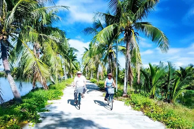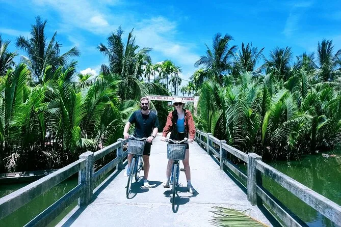 Seu dia inclui transporte do hotel em Hoi An (manhã ou tarde), uso das bicicletas durante todo o passeio pelo campo, todos os ingressos ao longo do trajeto, participação nas atividades agrícolas em Tra Que com orientação dos locais, passeio único de barco cesto pela floresta de coqueiros com moradores da vila de pescadores Cam Thanh, água mineral para refrescar, além de um almoço tradicional vietnamita antes de voltar pedalando para o hotel juntos.