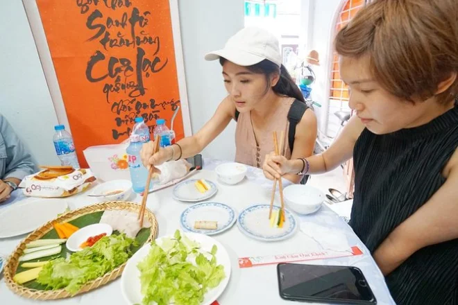 Depois, experimentamos os dumplings White Rose (delicados, macios — até hoje penso neles) e sentamos para o macarrão Cao Lau. Minh explicou que só usam água de um poço antigo da cidade para fazer essa receita. Ele contou histórias da infância ali — como ele escondia dumplings extras quando a mãe não estava olhando. Rimos muito mais do que eu esperava em um tour de comida. Teve até uma prova opcional de ovo balut; eu passei, mas torci pela corajosa australiana que encarou (a cara dela foi impagável!).