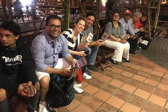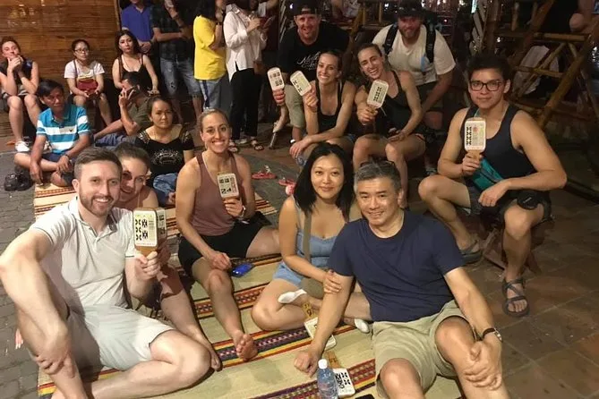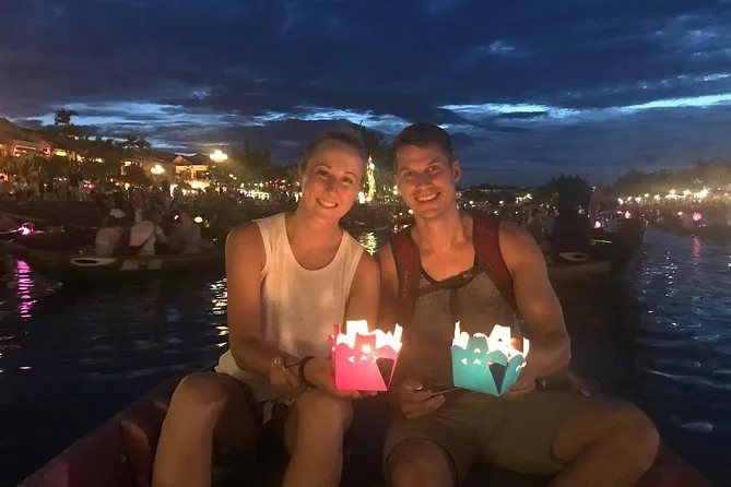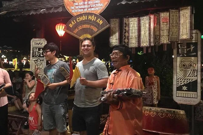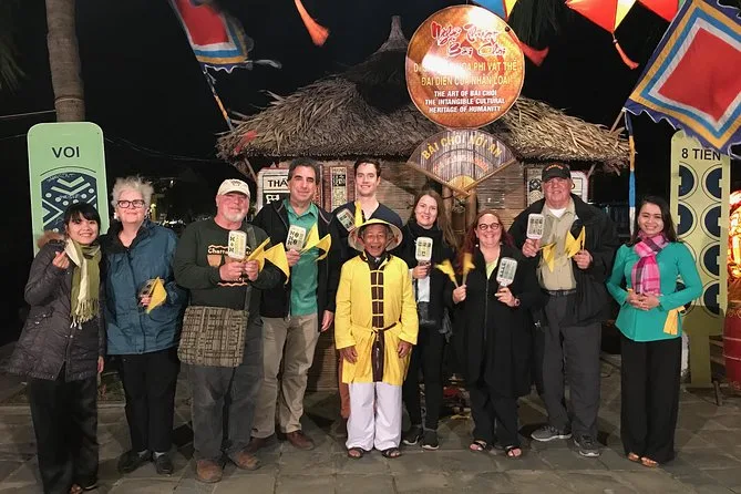 Seu passeio inclui todas as comidas e bebidas listadas no roteiro (nove degustações e jantar), jogos tradicionais como Bingo e Dap Nieu, uma lanterna de flor por pessoa para soltar no passeio de barco pelo Rio Hoai (compartilhado com até cinco convidados), guia local que fala inglês durante todo o tour, água mineral para se manter hidratado entre as paradas — e muitas oportunidades para fotos nos pontos mais famosos de Hoi An antes de voltar a pé.