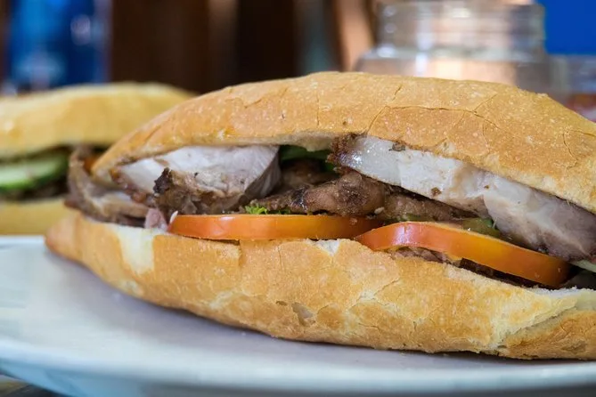 Começamos a caminhar pelas ruas iluminadas de Hoi An bem quando as lanternas começaram a acender — nosso guia, Minh, nos chamou do lado de fora de uma loja amarela. Já dava para sentir o cheiro de carne de porco grelhada e algo doce no ar. Sem pressa, Minh parava para mostrar pequenos detalhes — como o piso de azulejos antigos que permanecia fresco mesmo depois do calor do dia, ou como os moradores sempre arranjam um tempo para um café, mesmo com a rua cheia. A primeira parada foi um Banh My naquela barraca minúscula, onde a senhora sorriu para o meu “cam on” meio atrapalhado. O pão estava quentinho, crocante e, sinceramente, melhor que qualquer sanduíche que já comi em casa.