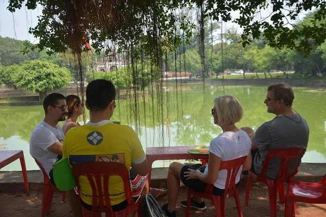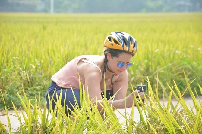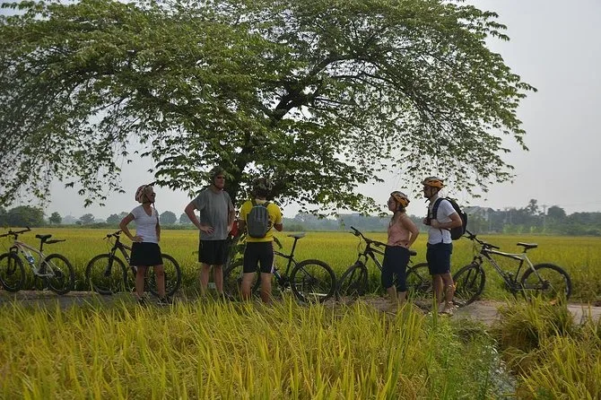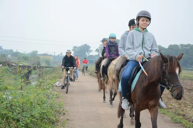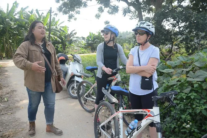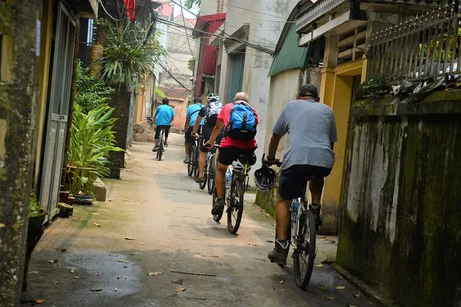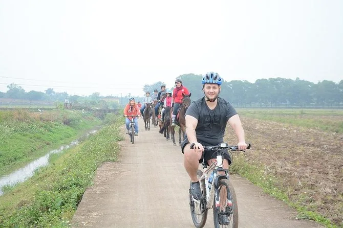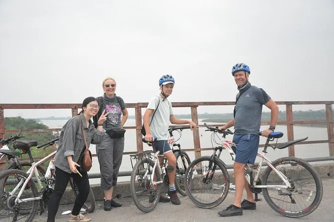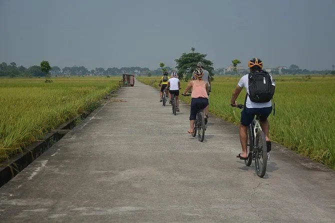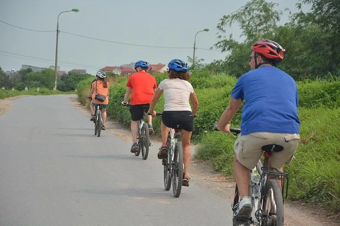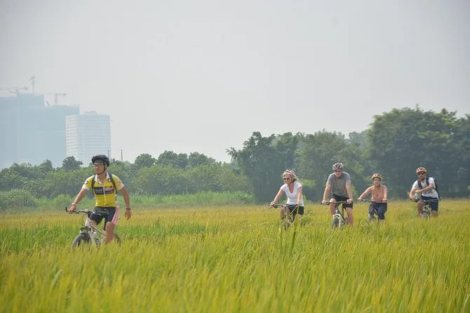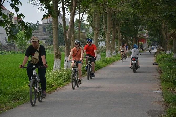 Seu meio dia inclui traslado do hotel em Hanoi, uso de bicicletas adequadas ao seu tamanho, água mineral durante o trajeto e paradas para suco de cana ou outras bebidas locais. Há um almoço tradicional em um restaurante local seguido de café com ovo ou chá antes de voltar à cidade com seu guia.