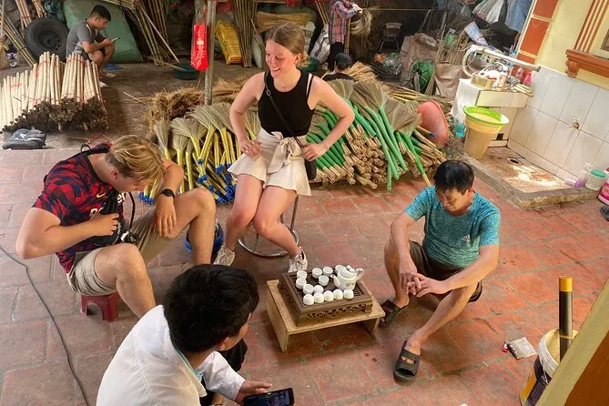 Sim — você vai visitar famílias que fazem bonsai e ver artesãos de vassouras trabalhando na vila de Hoi Phu.