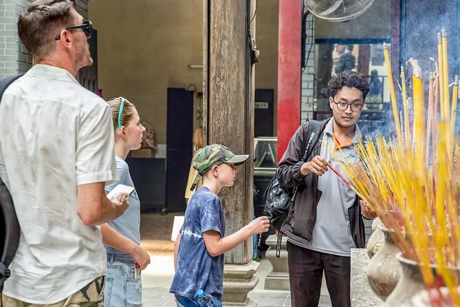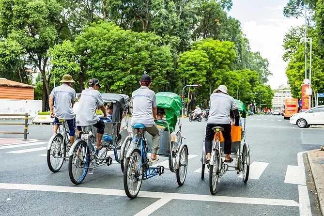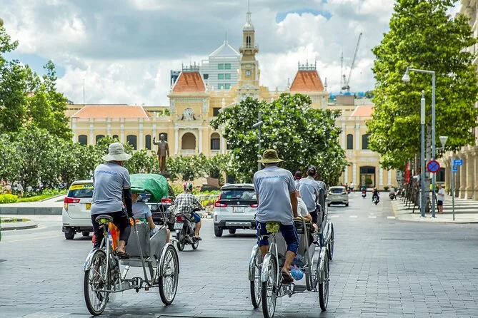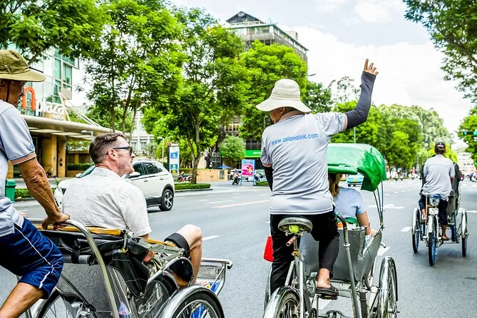 O seu dia inclui traslado do hotel (para quem estiver nos Distritos 1, 3 ou 5), todos os trajetos de cyclo com seu próprio ciclista pelas ruas da cidade, água mineral para refrescar sob o sol de Saigon, entradas em cada parada como o templo Thien Hau e os mercados, além de um guia local que fala inglês, garantindo que o passeio seja leve e divertido — e te deixa no ponto que preferir no centro de Saigon.