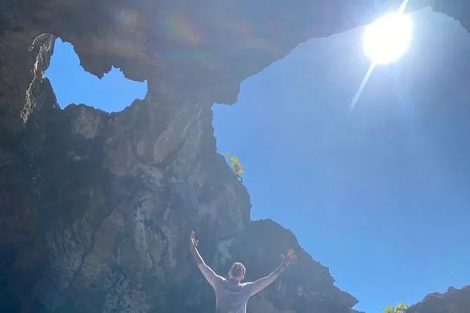You’ll hike rocky trails in Arecibo with a local guide, squeeze into Cueva del Indio to see ancient Taino carvings up close, walk along wild cliffs by the 7 arches, and finish at a quiet Caribbean beach. Expect sweaty shoes, salty air, and stories you’ll remember after you’re home.