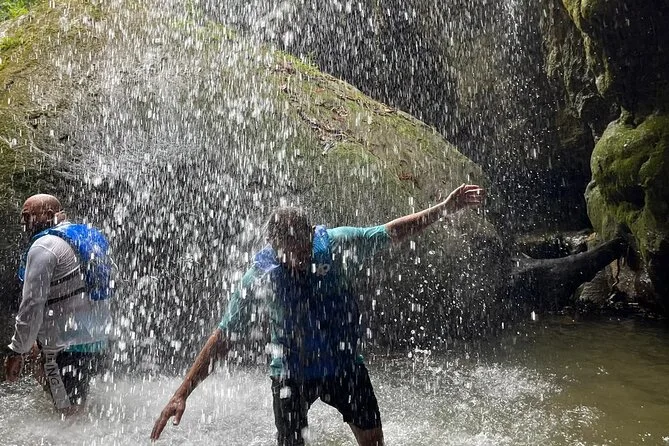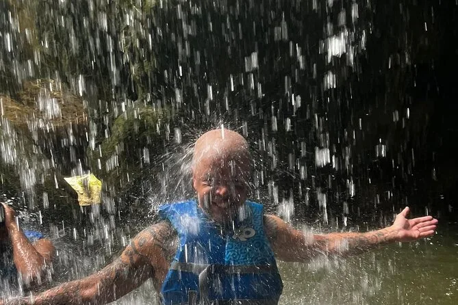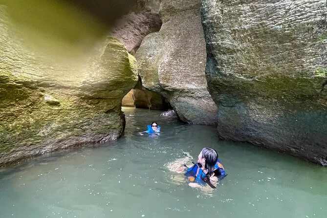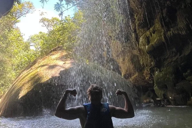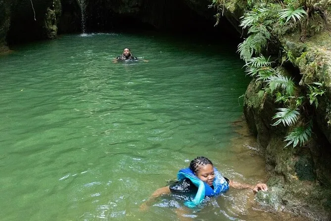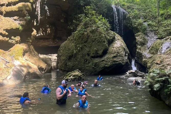 Your day includes pickup from San Juan, bottled water for along the way, all necessary safety gear like life vests, transport in an air-conditioned vehicle, and guidance from someone who knows these rivers since childhood—plus time to swim, explore caves, and relax by the waterfall before heading back.