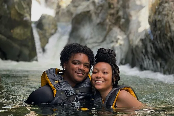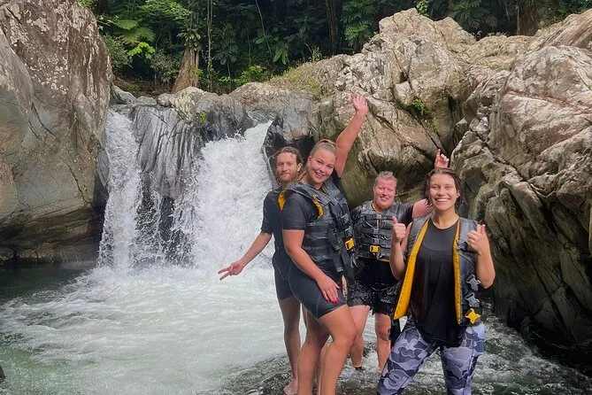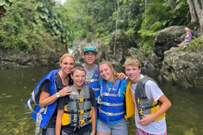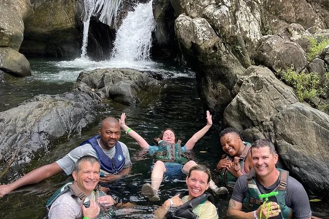 Your day includes hotel pickup and drop-off from San Juan or nearby towns in an air-conditioned vehicle with all entry fees covered; life jackets are provided for swimming at Las Tinajas Falls; after hiking through El Yunque rainforest with your guide, you'll stop for lunch by Luquillo Beach before heading back in the afternoon.