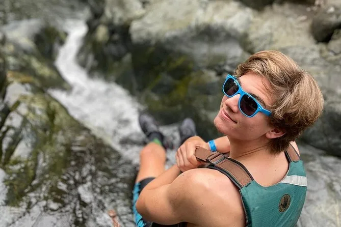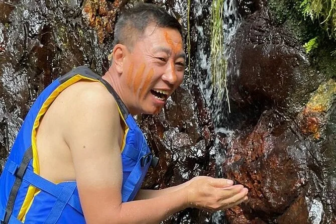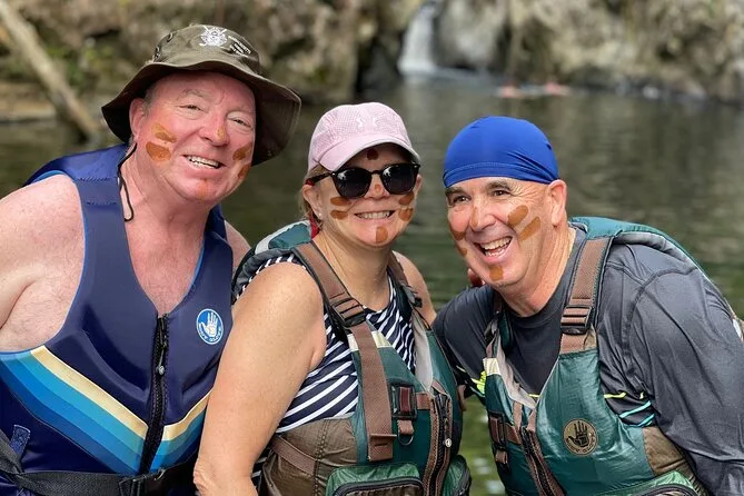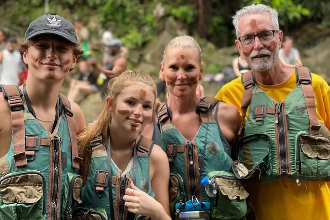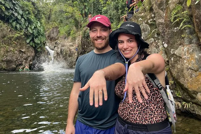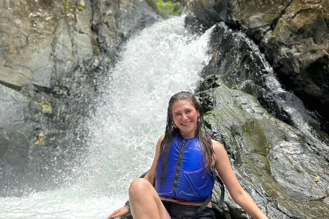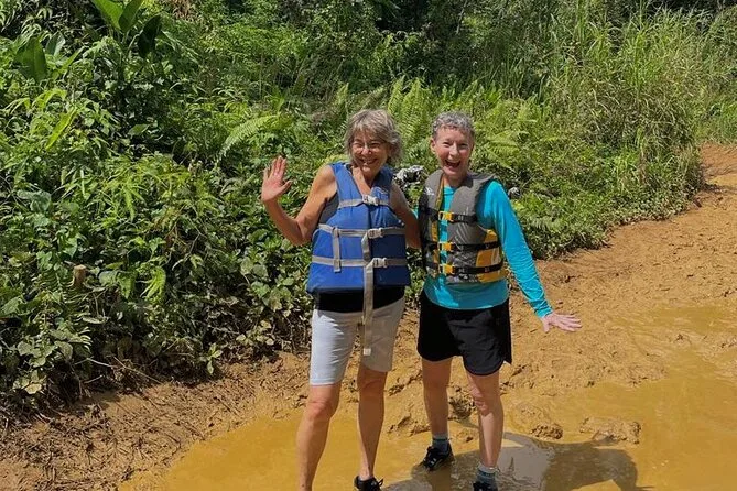Wear clothes you don’t mind getting muddy and bring sturdy shoes; swimsuits are recommended for swimming at the falls.