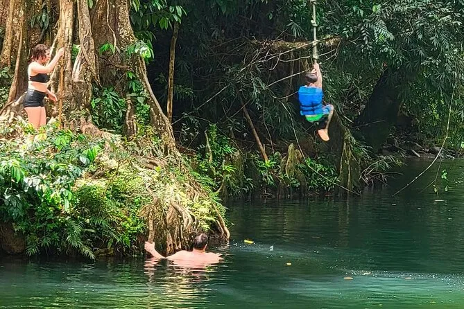 You’ll hike muddy trails, swim in river pools, try natural water slides, cliff jumping, and rope swings—all guided safely.