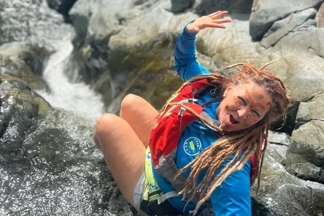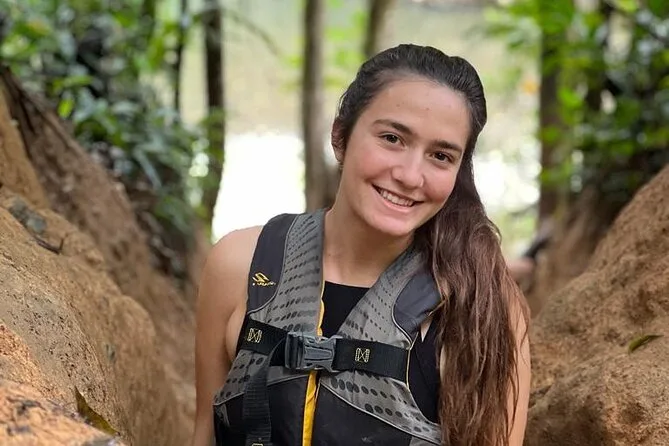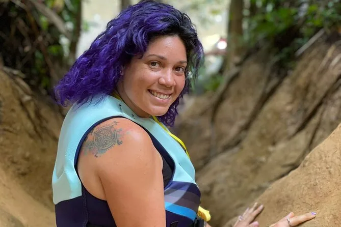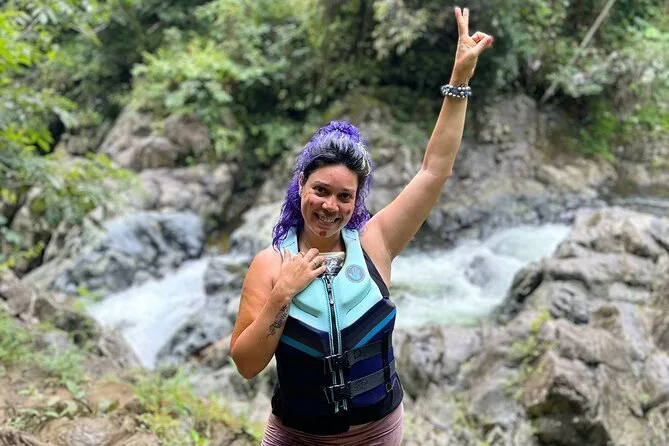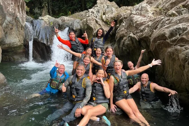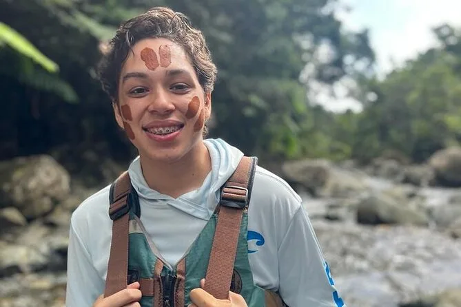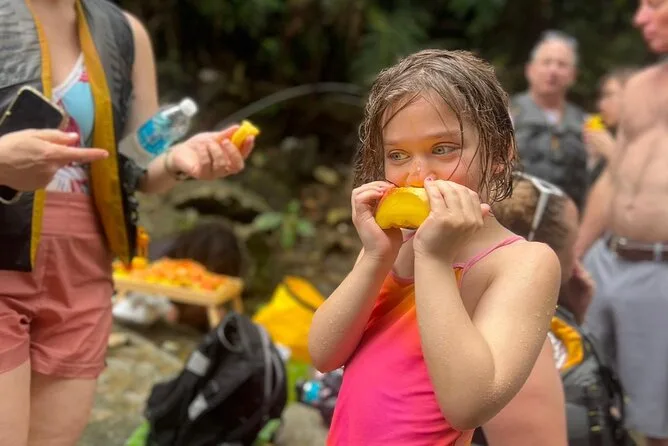 The hike was only about 20 minutes but somehow felt longer — maybe because we kept stopping to look at tiny orchids or just to catch our breath (it’s more uphill than I expected). At the river, the air cooled down fast. Someone dared me to try the natural water slide; honestly, I hesitated. But then everyone else did it, so… yeah. The water was colder than I thought it would be — sharp and clear — and for a second underwater all I could hear was my own heart thumping. When I came up, Carlos tossed me a life vest with a wink. There were snacks waiting on the rocks: mango slices and something salty that stuck to my fingers.