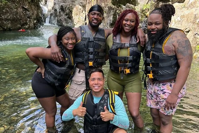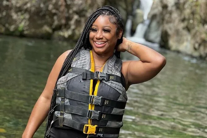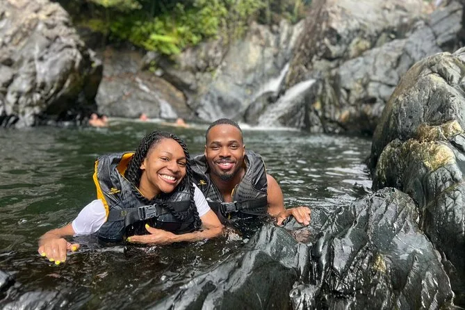 Your day includes private transportation with hotel pickup and drop-off, guided hiking through El Yunque rainforest trails with a certified local guide (one per seven guests), bottled water and seasonal fresh-cut fruit snacks along the way, plus life vests for river activities—all wrapped up with time to relax at Luquillo Beach before heading back.