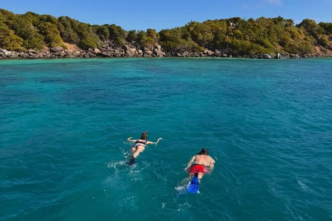 The charter departs from Marina Puerto del Rey in Fajardo and sails to either Piñeros or Palomino islands.