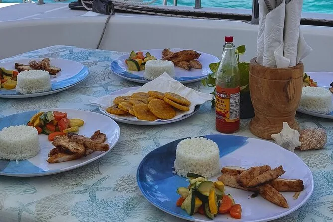 I’m not much of a swimmer but floating above those corals was easier than expected. Saw a parrotfish nibbling at something purple — maybe coral? No idea. The crew kept checking if we needed help or more snacks; honestly, it felt like hanging out with friends who actually know what they’re doing. Lunch was grilled chicken and yellow rice cooked right on board (the smell drifted over before I saw the plates). There was this quick cooking demo too; Li laughed when I tried to say “sofrito” in Spanish — probably butchered it.