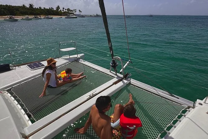 I didn’t expect the water to look that blue — almost fake, like someone cranked up the color on a TV. We met our guide at Marina Puerto del Rey just before nine (I was nervous we’d be late, but turns out “island time” is real). The Janise Lagoon catamaran felt bigger than I thought, and the crew — I wish I remembered everyone’s names — were already joking with us before we even left the dock. Someone handed me a cold drink right away. That first salty breeze hit my face and I just… kind of melted into it.