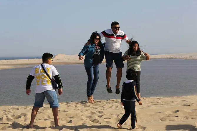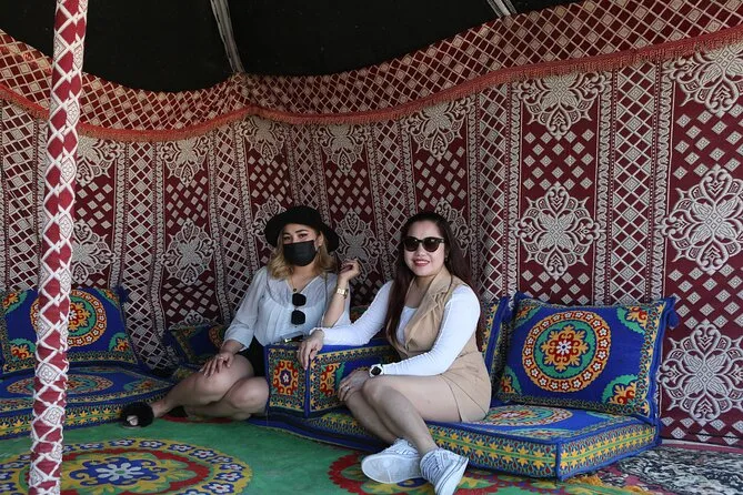 You’ll also try camel riding, sand boarding, photo stops, and enjoy tea at a traditional camp.