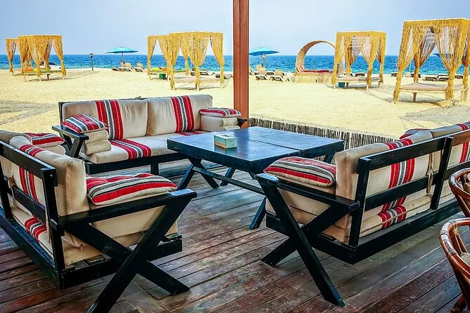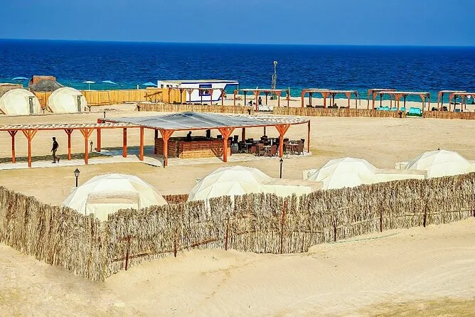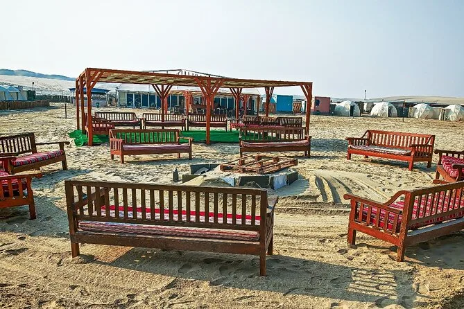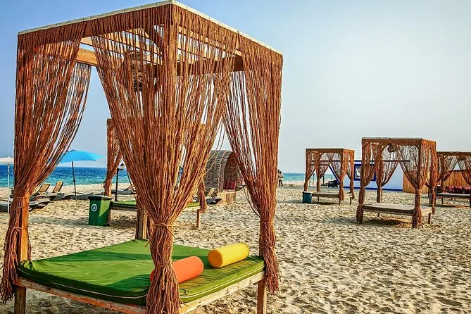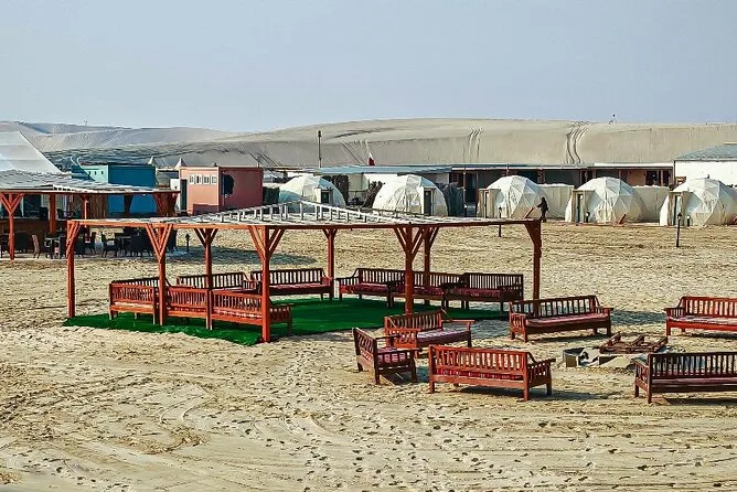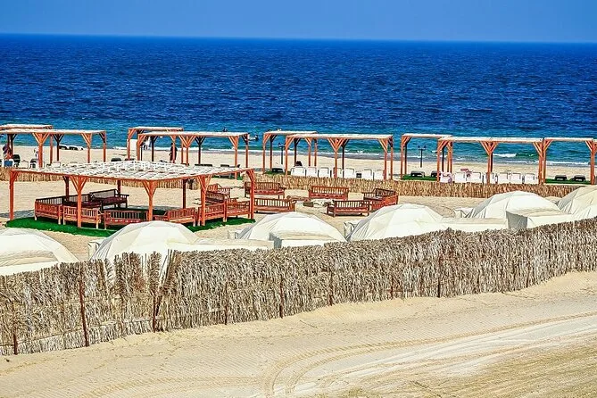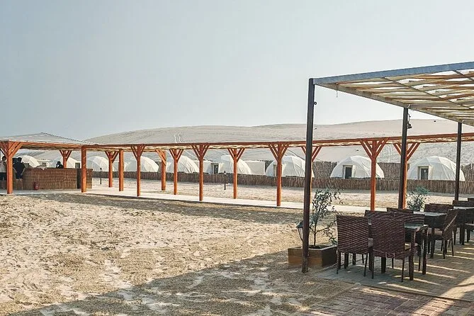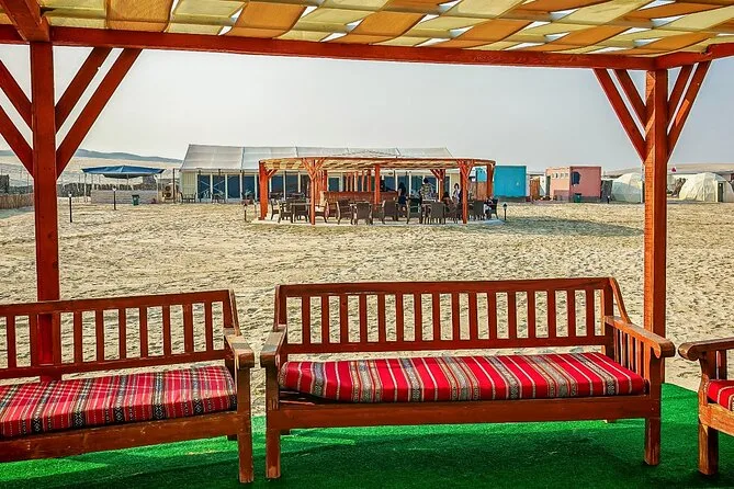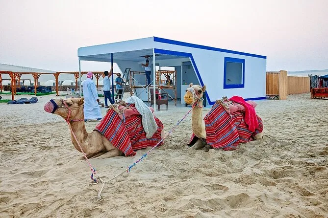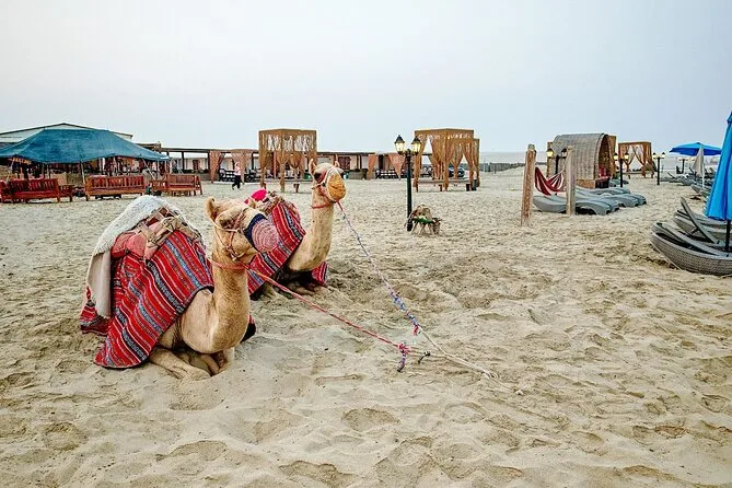 Your day includes private hotel pickup and drop-off in Doha, guided dune bashing with a licensed driver through Mesaieed’s sands to Khor Al Udaid (the Inland Sea), camel rides at Sealine Beach if you want them, bottled water plus soft drinks all day, a buffet lunch or dinner at Al Rahal Desert Camp with time to relax by bonfire or sunbeds—and yes, travel insurance is covered too before heading back in comfort.