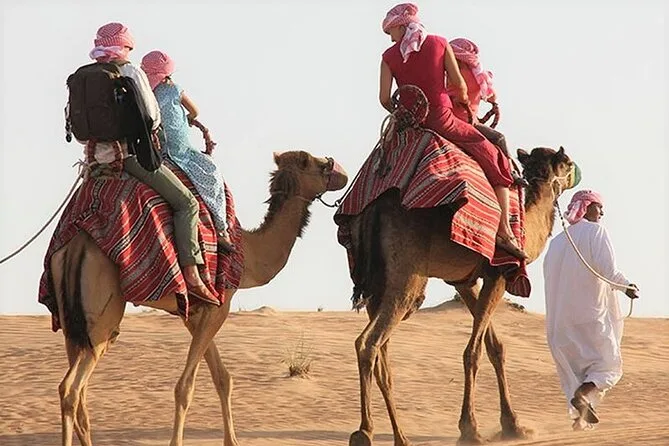The camel ride lasts about 5–10 minutes if selected from your tour options.