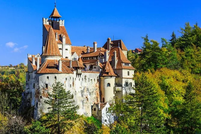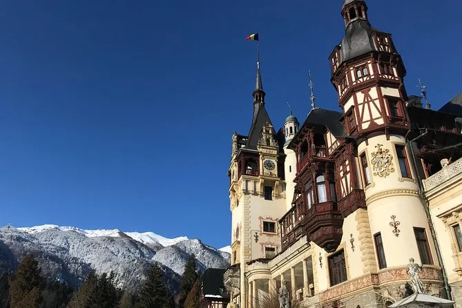 The tour visits Peles Castle near Sinaia and Bran Castle (“Dracula’s Castle”), plus Sinaia Monastery.