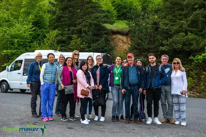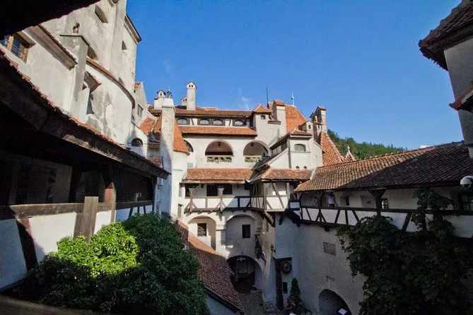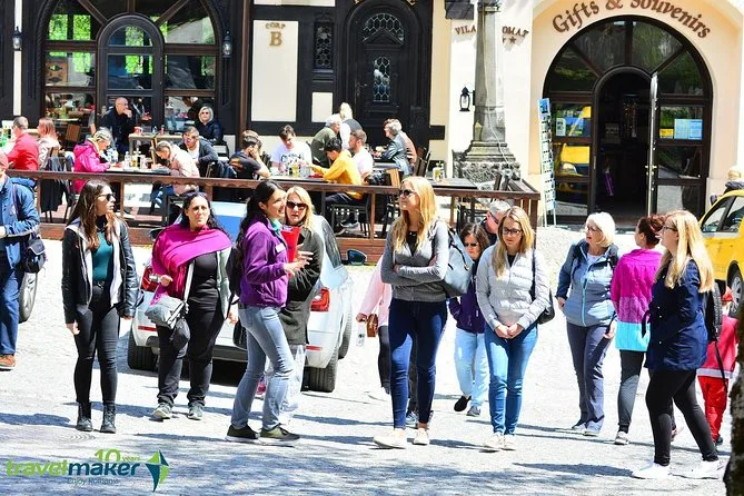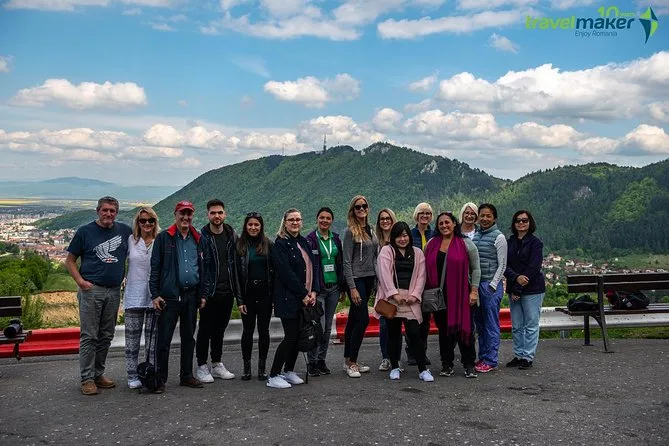 The tour is a full-day trip from Bucharest, typically lasting around 12 hours including stops at Peles Castle, Brasov, and Bran Castle.