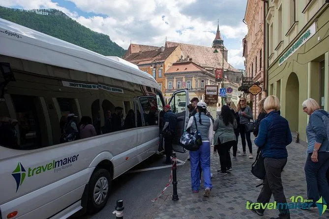 Your day includes transportation by air-conditioned minivan or minibus (with WiFi), live English-speaking guide commentary throughout each stop, a short walking tour of Brasov’s downtown streets, plus optional audio guides in Spanish, Italian, French or Hebrew if you request ahead of time. Entrance tickets for castles aren’t included—you’ll need to book those yourself before traveling.