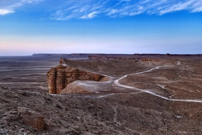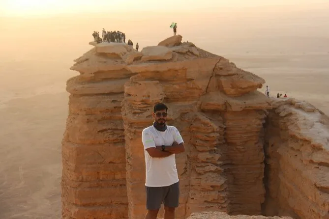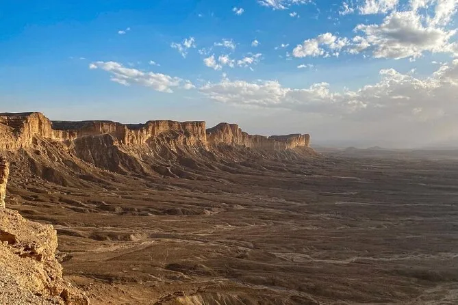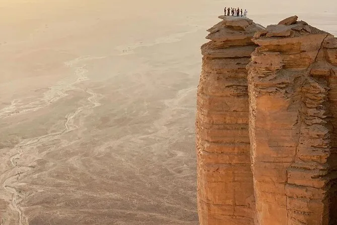 The Edge of the World (Jebel Fihrayn) is located near Riyadh; exact distances vary by route but tours include transportation.