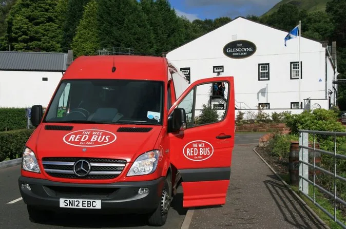 The tour visits Glengoyne Distillery for a guided tour and whisky tasting.
