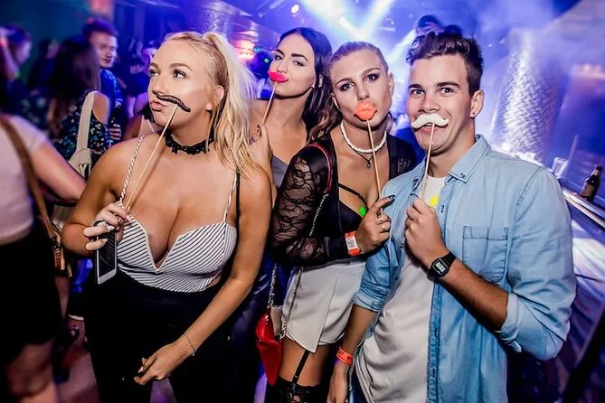 Your night includes guided entry to four distinct bars plus three different nightclubs—including famous floating splav boat parties—with unlimited drinks for one hour at your first stop (choose from shots or local spirits). Entry tickets are covered everywhere you go; expect happy hours, party games to break the ice, live bands or DJs depending on venue vibes—and plenty of chances to meet locals or fellow travelers before heading home whenever you’re ready.