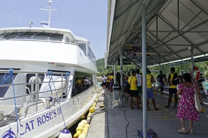 Your booking includes your confirmed Cat Rose fast ferry transfer between Praslin and La Digue (or return), with ticket pickup right at either jetty before departure. You’ll have space for both cabin bags (up to 7kg) and checked luggage (up to 30kg), plus support for families with infants or travelers needing wheelchair access—all handled smoothly by local staff before you set off across that narrow stretch of sea.