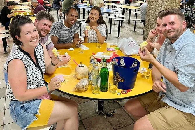 Your day includes guided walks through Chinatown, Little India and Kampong Glam with your local host sharing personal stories along the way; tastings at multiple hawker centres covering Chinese, Indian Muslim and Malay dishes; bottled water, soda or pop; coffee or tea; snacks; lunch; dinner; plus alcoholic beverages if you’d like — all woven into one continuous experience using public transport between neighborhoods.