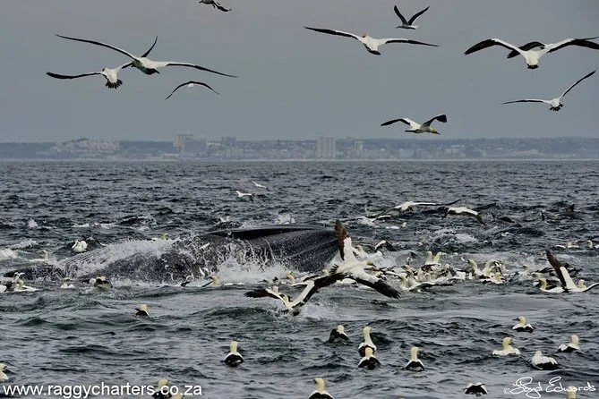 You might spot humpback whales (June–December), southern right whales (July–September), bottlenose dolphins year-round, African penguins at St Croix Island, plus Cape fur seals and many seabirds.