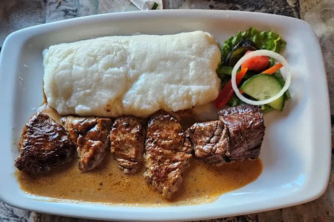 You’ll try dishes like bobotie, samoosas, tomato bredie, biltong, Gatsby sandwiches, braai meats, koeksisters, and more.
