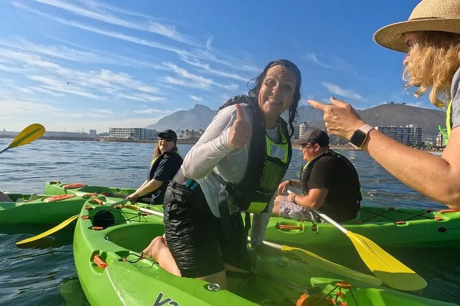 Your experience comes with all equipment you’ll need: lifejackets that fit comfortably plus sturdy paddles ready for any skill level. Guides are always on hand to assist—whether you want to jump in for a swim or just relax in your kayak—and when you’re done exploring, returning to shore is simple thanks to easy access at the V&A Waterfront.