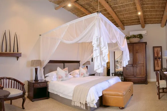You stay overnight in either a private chalet or lodge room at Garden Route Game Lodge.