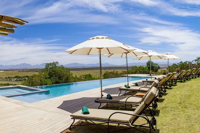 Your trip includes hotel pickup and drop-off in Cape Town, overnight accommodation at Garden Route Game Lodge (either private chalet or lodge room), dinner and breakfast as per itinerary, transport by air-conditioned minivan, two guided game drives (sunset and early morning), plus stops at Cape Agulhas, Hermanus markets (seasonal whale watching), and Betty’s Bay penguin colony before returning late afternoon.
