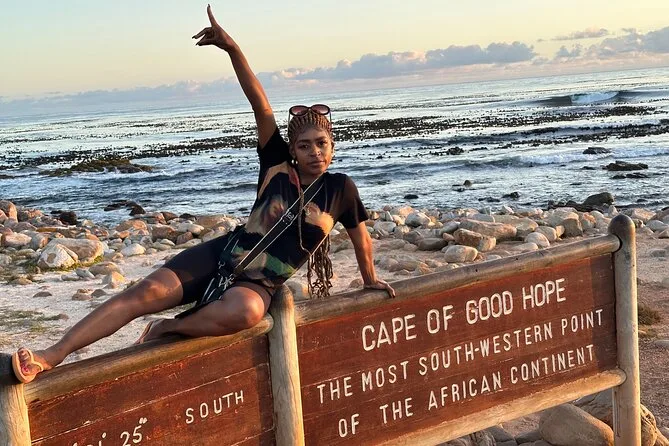 Afterwards we wound down into Bo-Kaap—those houses really are as bright as they look in photos—and then along the coast past Camps Bay, where palm trees lean like they’re always half asleep. Chapman’s Peak Drive was wild; cliffs on one side, ocean on the other, and Thabo played old Johnny Clegg songs through the speakers. We stopped at Noordhoek Farm Village for coffee (the bakery smelled like cinnamon) before heading to Cape Point Vineyards. I’m not really a wine person but sitting outside with a glass and watching clouds roll over the hills felt pretty good.