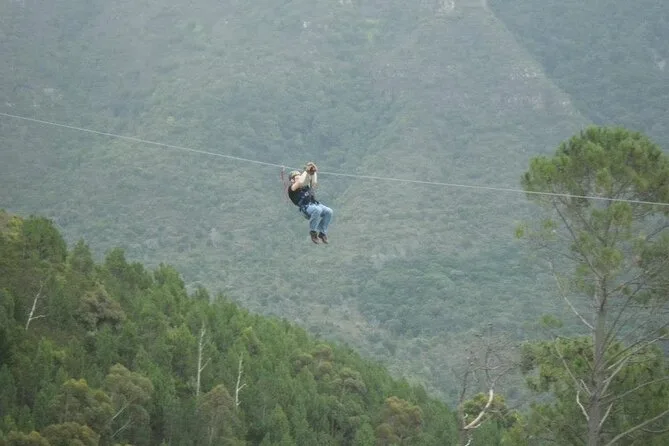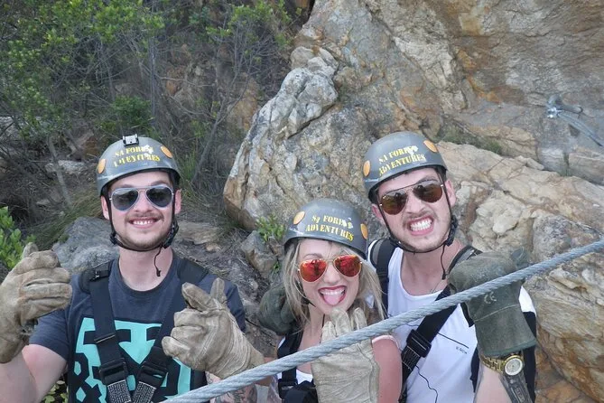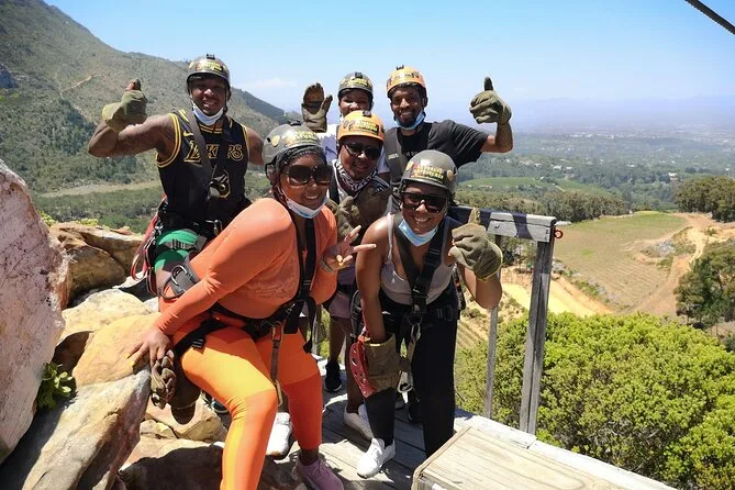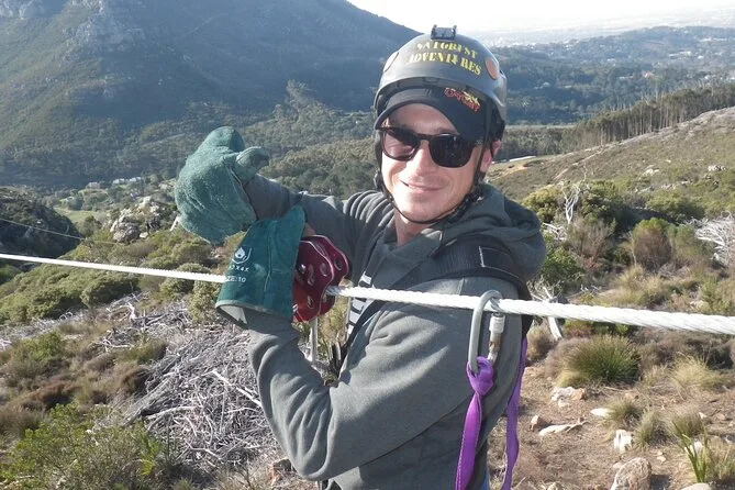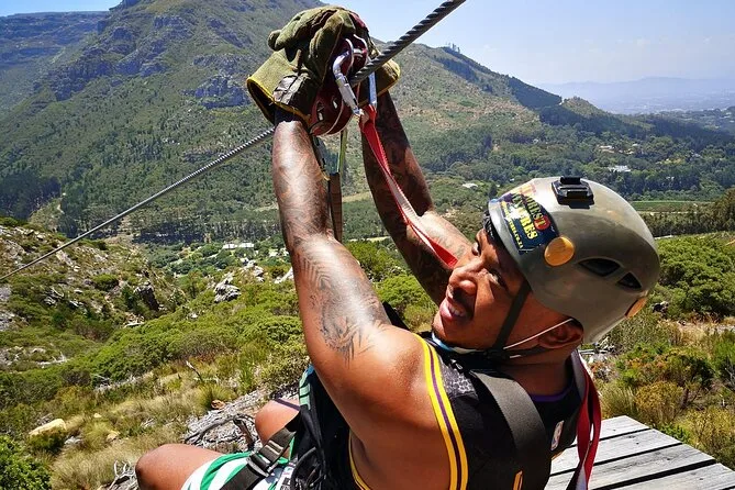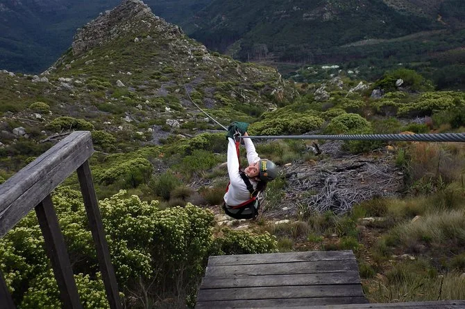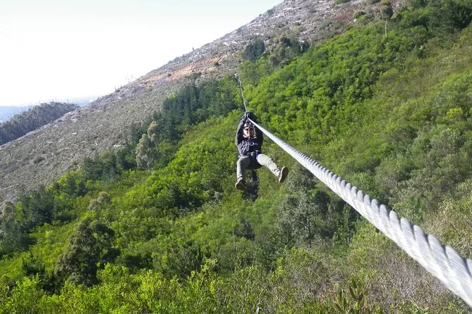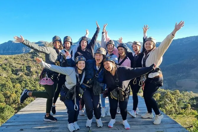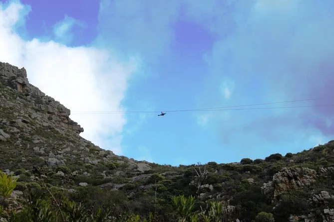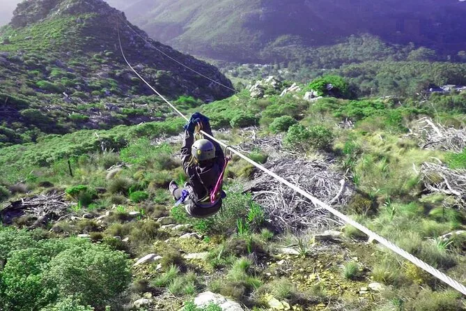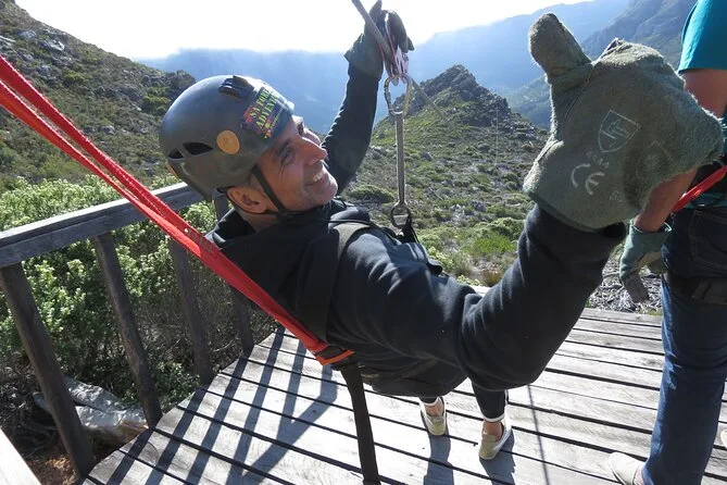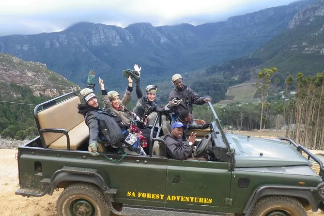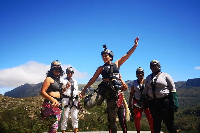 Your day includes pickup by 4x4 from the meeting point near Hout Bay harbor, all safety gear and harnesses fitted by local guides, plus a bottle of still water for each person before heading back down after your last flight over Cape Town’s canyons.