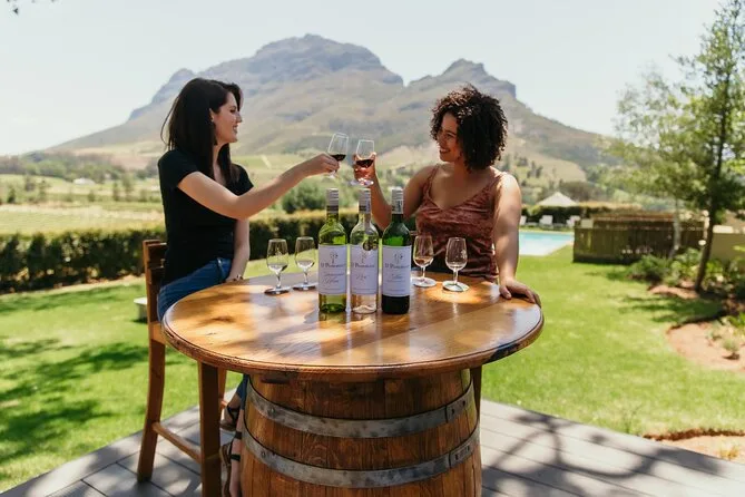 The tour visits Paarl, Franschhoek, and Stellenbosch in the Cape Winelands.
