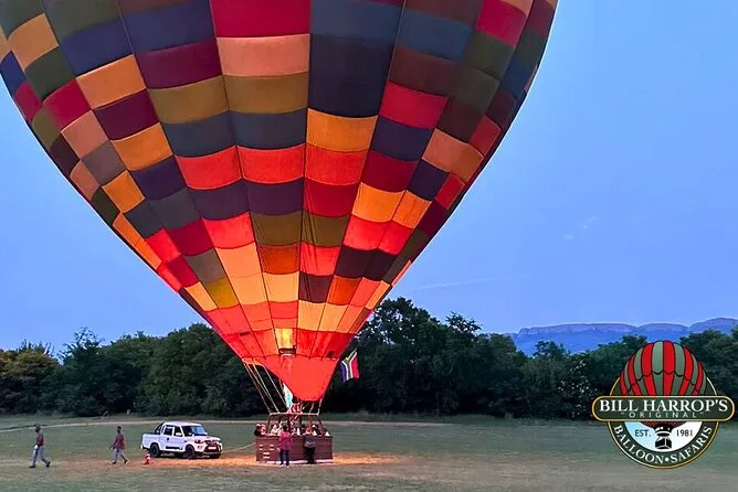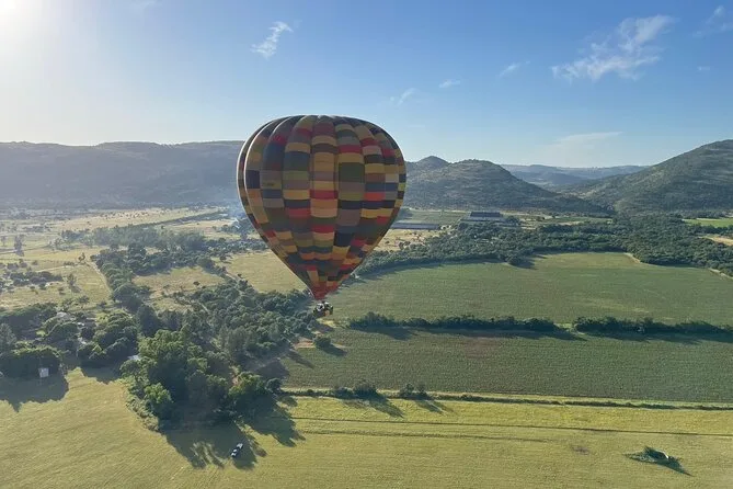 Your morning includes an early meet-up near Magaliesburg followed by a one-hour hot air balloon flight piloted by an experienced local guide. Sparkling wine is served during your aerial journey, then you’ll return by minibus to enjoy a full buffet breakfast with coffee at the clubhouse before heading out again.