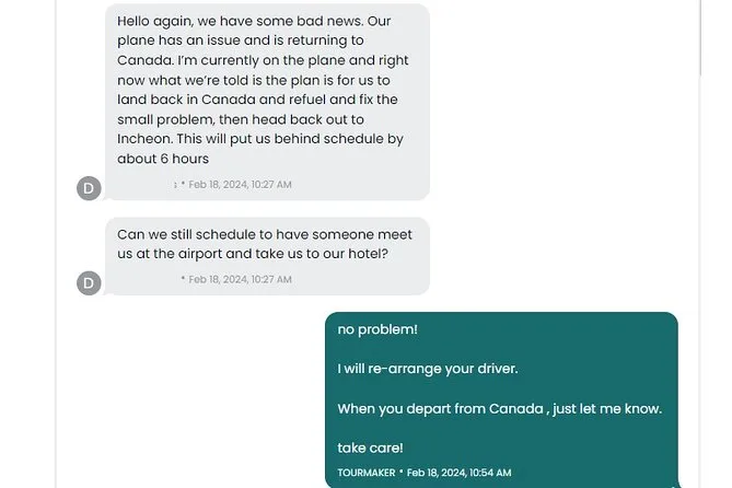Yes, if departing from Seoul, your driver meets you outside your hotel 10 minutes before your scheduled time.