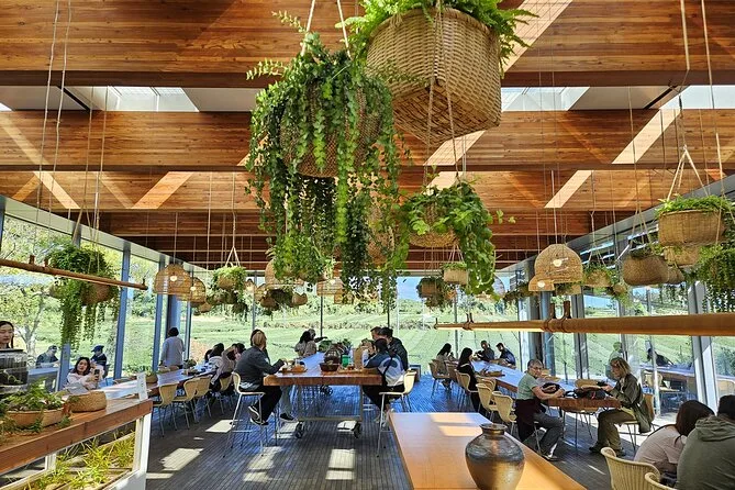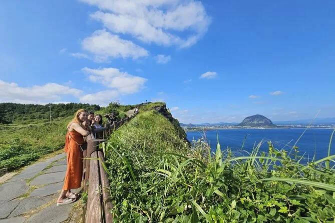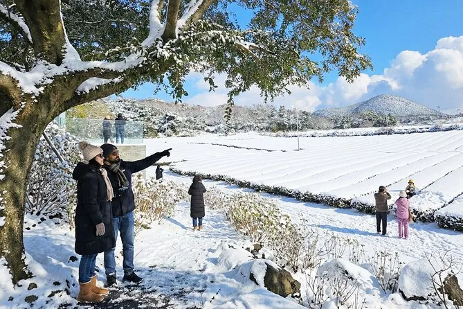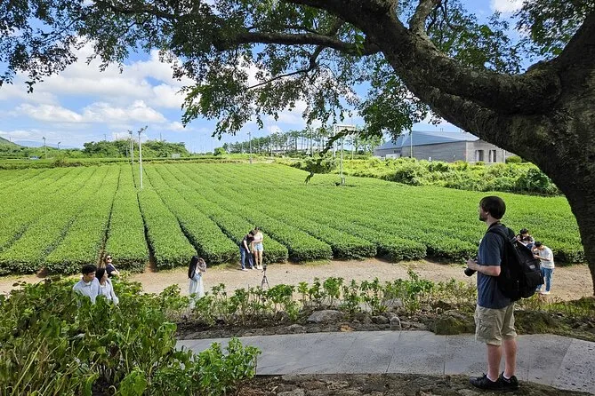 Your day includes pickup in downtown Jeju City, all entrance fees along the route (including O’Sulloc Tea Museum), transport by air-conditioned vehicle with a licensed local guide leading each stop, plus an included lunch with vegetarian options before returning to town by early evening.