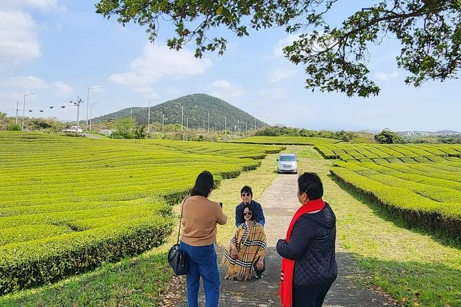 Your day includes comfortable air-conditioned transport with hotel pickup, entry tickets for each site including Camellia Hill and O’sulloc Tea Museum, guidance in English or Chinese throughout, plus parking fees and fuel costs taken care of so you can just focus on soaking up Jeju’s scenery and flavors along the way.