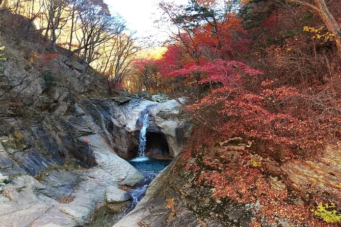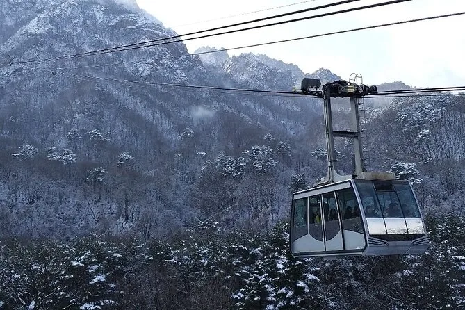 You can hike an easy trail or take the cable car if available; during fall foliage season you'll visit Jujeongol Valley for hiking instead.