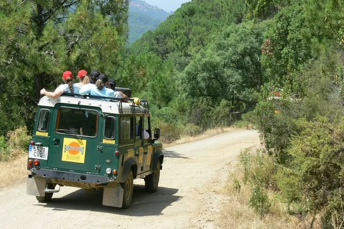 Your day includes hotel pickup from Marbella or Estepona in an open-roof Land Rover Defender, guided stops through nature with stories about local culture and wildlife, visits to two white villages (with time to explore), swimming in a wild river if it’s summer, and a traditional lunch at a small village restaurant before heading back home together.